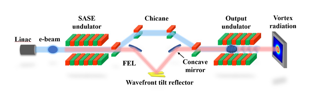 基于波前整形产生X射线涡旋自由电子激光的方案示意图