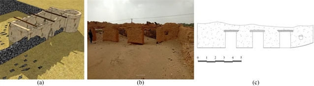▲ 图五:尚卡尔城堡的清真寺:(a) 清真寺的位置;(b) 清真寺的主立面;(c) 清真寺立面示意图。©本文作者(2023年)