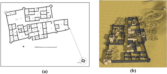 ▲ 图二:尚卡尔城堡:(a) 城堡平面图,图中以编号标注了城堡内各单元;(b) 城堡建筑平面布局示意图。©本文作者(2023年)