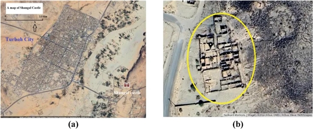 ▲ 图一:地图显示:(a) 图尔巴市的区位;(b) 尚卡尔城堡的区位。资料来源:谷歌地球。