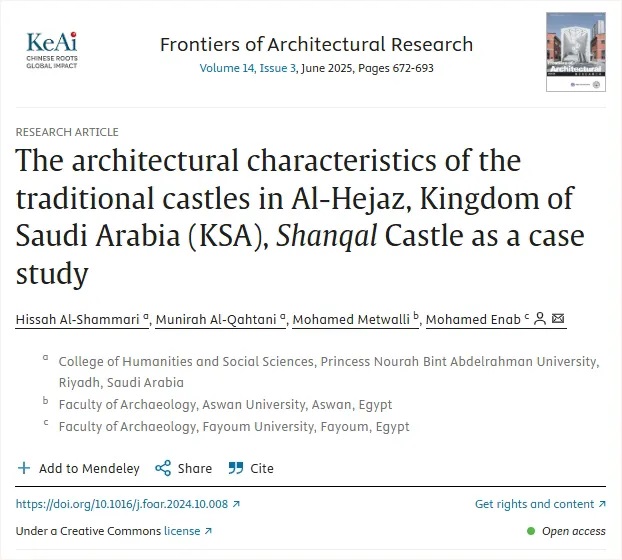 沙特阿拉伯王国汉志地区传统城堡的建筑特征研究:以尚卡尔城堡为例。论文标题:The architectural characteristics of the traditional castles in Al-Hejaz, Kingdom of Saudi Arabia (KSA), Shanqal Castle as a case study