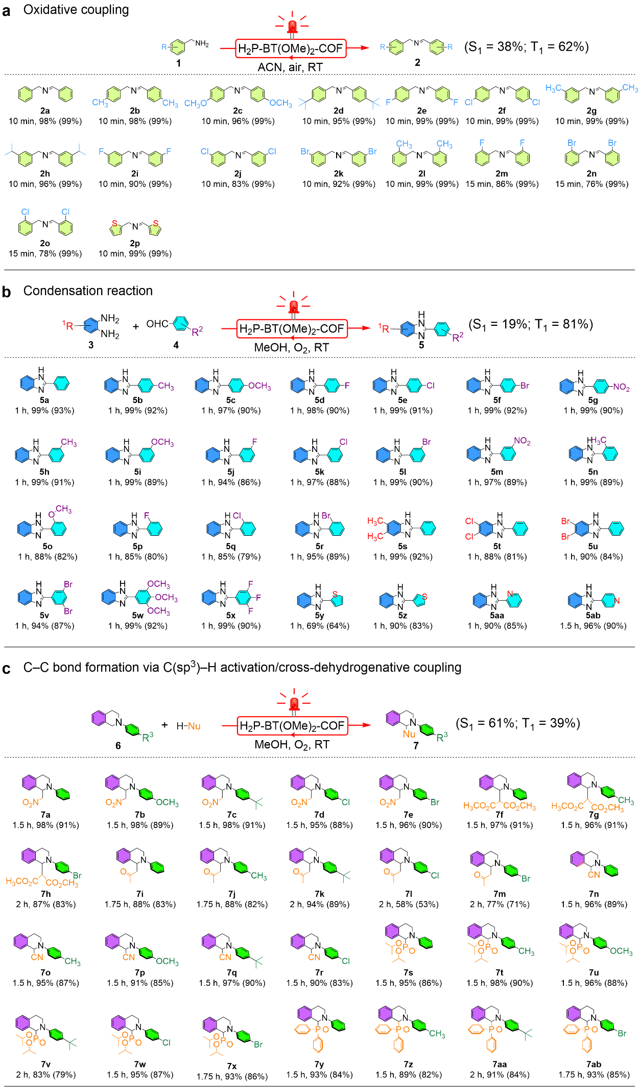图6:光催化 H2P-BT(OMe)2-COF 的偶联和缩合反应。