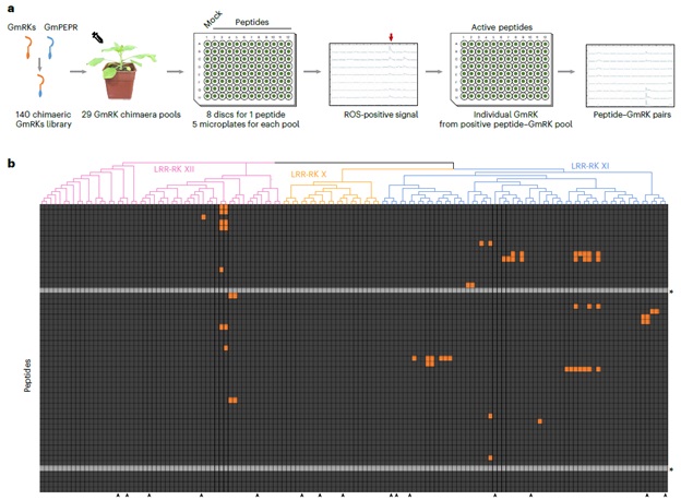 研究阐明免疫激发子-受体模块赋予作物广谱抗性。植物基因组编码着数千种分泌小肽,这类肽类物质对植物从发育到防御反应等生命活动环节均发挥重要调控作用。其中,较多分泌小肽会被膜定位的模式识别受体感知,而富含亮氨酸重复序列的受体激酶便是这类受体中最大的家族之一。