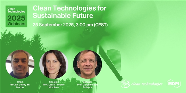 由Clean Technologies 期刊主办的第一届线上研讨会——清洁技术引领可持续未来 (Clean Technologies for Sustainable Future),将于2025年9月25日21:00 (北京时间) 在sciforum.net网络平台召开。会议由Prof. Dr. Dmitry Yu. Murzin (Clean Technologies 期刊编委) 担任主席。