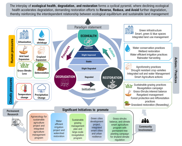 研究成果为政策制定者提供了关键的循证框架,研究建议生态债务持续扩大的国家,应优先在退化“热点”地区实施干预,避免损失加剧。此外,研究提出的“土地平衡金字塔”管理模型(优先避免新增退化>减缓现有退化>恢复已退化土地)为实现2030年旱地可持续管理目标提供了清晰的行动路线图。