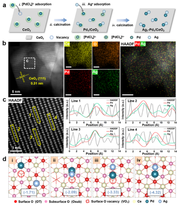 近日,中国科学院青岛生物能源与过程研究所提出了一种新型的种子介导策略,成功构建了具有明确Ag1-Pd1双原子构型的Ag1-Pd1/CeO2催化剂。