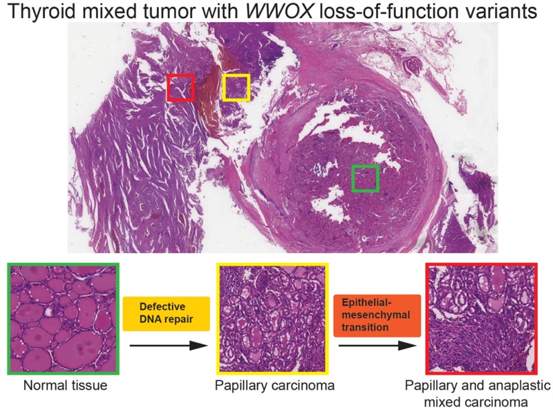 WWOX胚系失活突变是甲状腺癌的关键驱动因子,通过削弱DNA损伤修复并激活EMT,促进肿瘤的发生与发展