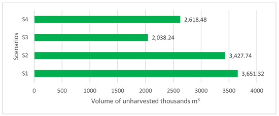 根据S1-S4情景估算的未采伐木材量。