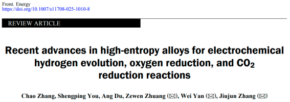 Chao Zhang, Shengping You, Ang Du, Zewen Zhuang, Wei Yan, Jiujun Zhang. Recent advances in high-entropy alloys for electrochemical hydrogen evolution, oxygen reduction, and CO2 reduction reactions. Front. Energy, https://doi.org/10.1007/s11708-025-1010-8