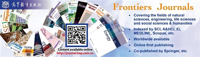 由教育部主管、高等教育出版社主办的《前沿》(Frontiers)系列英文学术期刊,于2006年正式创刊,以网络版和印刷版向全球发行。系列期刊包括基础科学、生命科学、工程技术和人文社会科学四个主题,是我国覆盖学科最广泛的英文学术期刊群,其中12种被SCI收录,其他也被AHCI、Ei、MEDLINE或相应学科国际权威检索系统收录,具有一定的国际学术影响力。系列期刊采用在线优先出版方式,保证文章以最快速度发表。