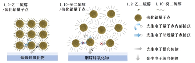 图1. 硫化铅量子点/IGZO薄膜在EDT和DDT配体作用下电荷传输