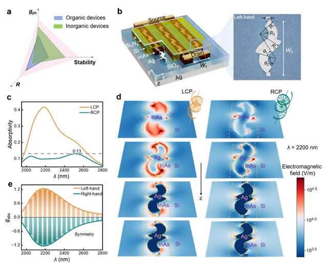 研究人员设计了一种类S型手性超表面结构,其可通过左、右旋圆偏振光激发显著差异的局域表面等离激元共振,使原本不具备左/右旋光分辨能力的InAs材料在近中红外波段实现对左/右旋光的显著差异化吸收。