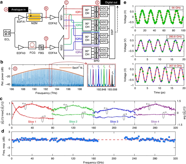 该成果以320 GHz photonic-electronic analogue-to-digital converter (ADC) exploiting Kerr soliton microcombs