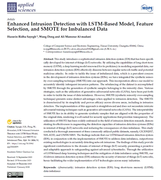 利用基于LSTM的模型、特征选择和SMOTE对不平衡数据进行增强型入侵检测