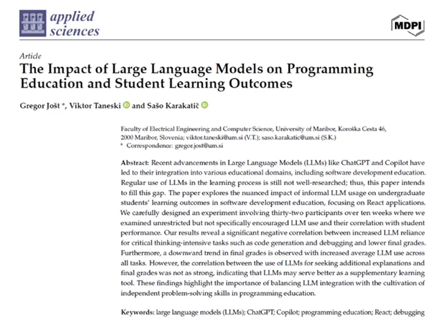 本文以React应用为重点,探讨了在软件开发教育中非正式使用大语言模型 (LLM) 对本科生学习成果的细微影响。