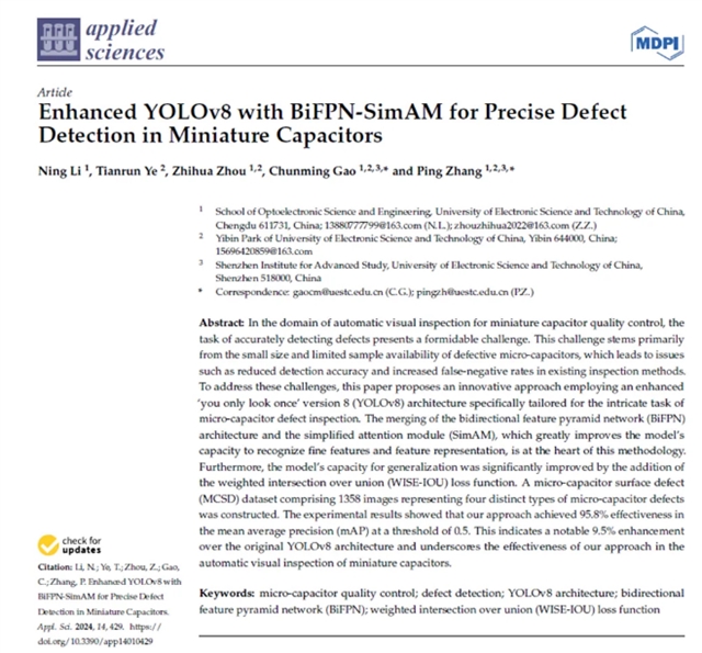 基于BiFPN-SimAM的增强型YOLOv8用于微型电容器中的精确缺陷检测