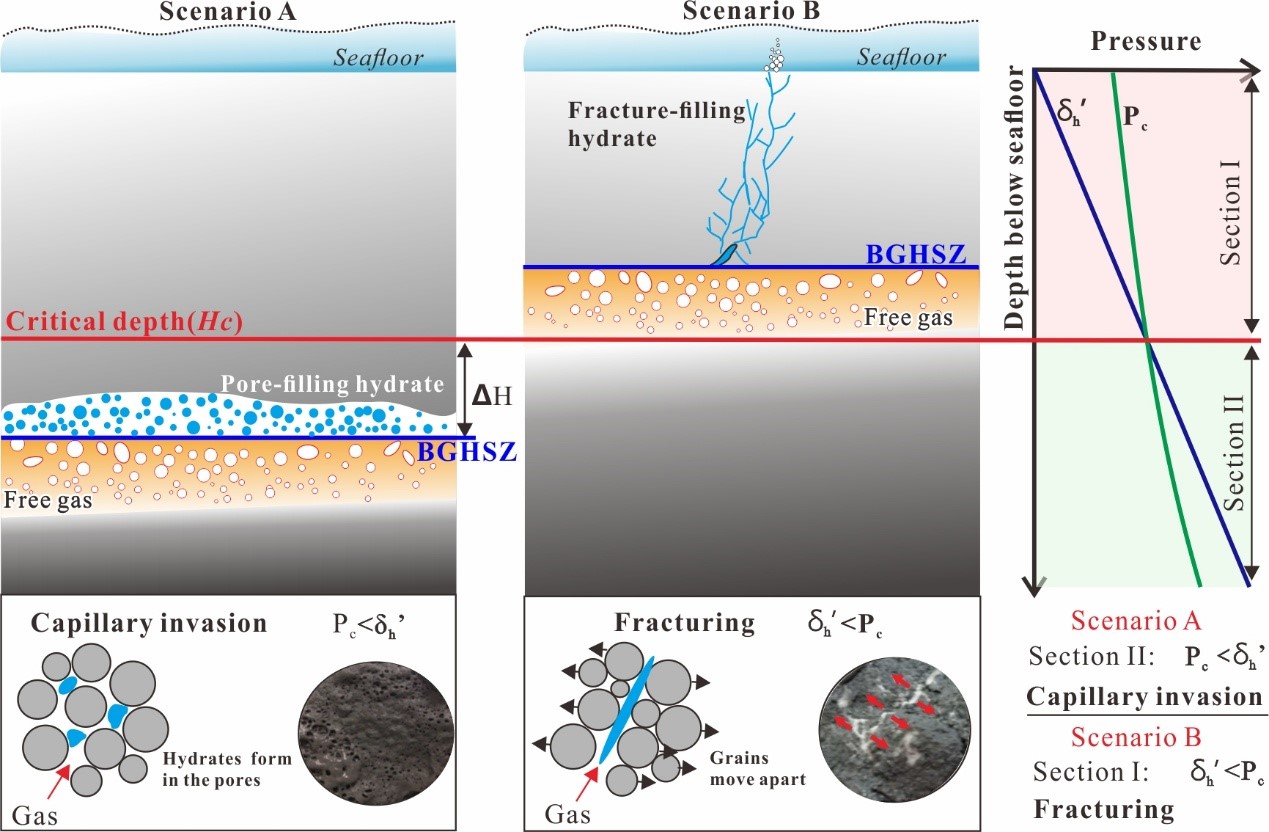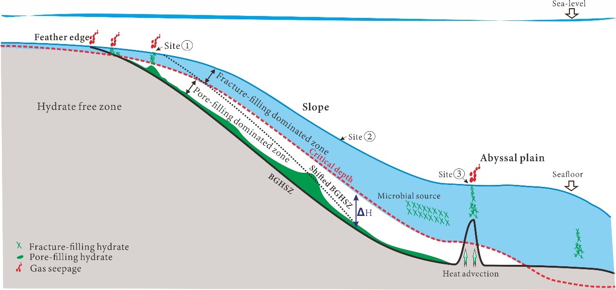 研究团队进一步建立了大陆边缘不同水深范围内水合物分布的新模型。一般而言,在陆坡区,临界深度浅于BGHSZ,发育孔隙充填型水合物;而在深海平原区,由于泥质含量增大,临界深度深于BGHSZ,主要发育裂缝充填型水合物。这个模型为未来评估水合物在全球碳循环中的作用提供了一个基础框架。(来源:中国科学报 朱汉斌)