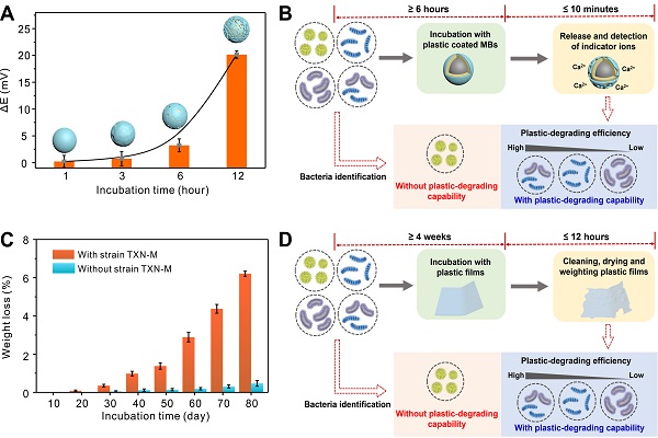 这一研究可拓展应用于对各类塑料降解微生物及降解酶的快速筛查与降解能力的评估。
