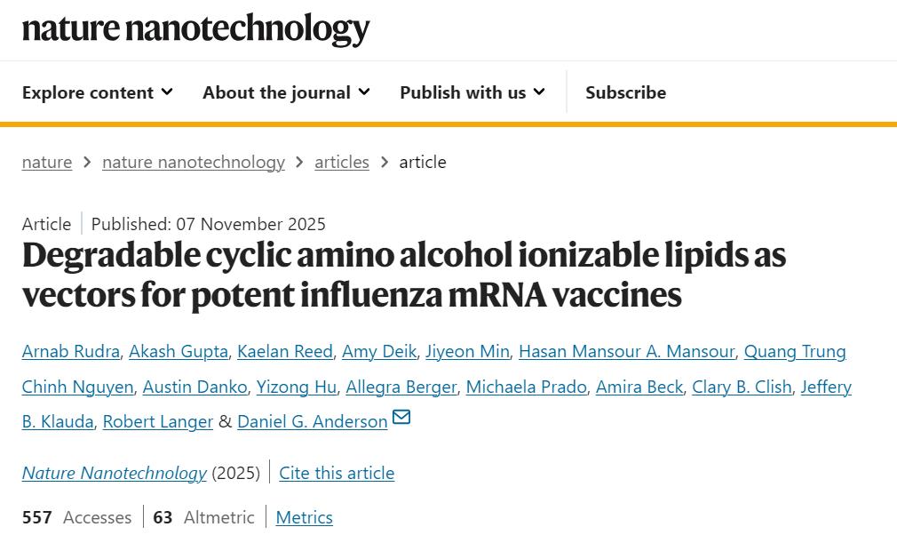 常规脂质纳米颗粒包含可电离脂质、胆固醇、辅助磷脂、聚乙二醇脂质等。团队将突破重点放在决定疫苗效力的关键成分——可电离脂质上。