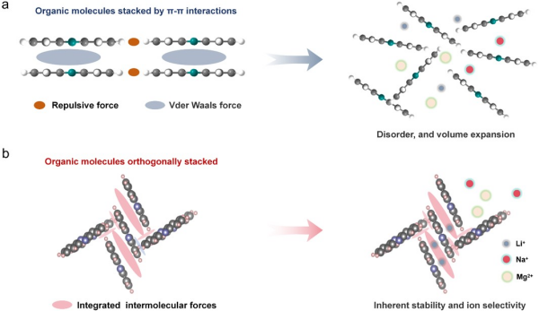 相关研究成果以Molecular Stacking Patterns Enhance Organic Small-Molecule Electrochemical Stability and Enable Ion Separation为题,发表在《纳米快报》(Nano Letters)上。