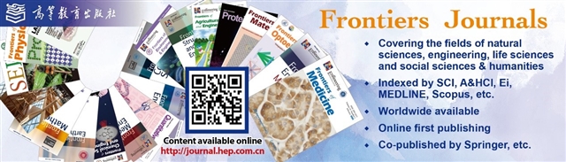 由教育部主管、高等教育出版社主办的《前沿》(Frontiers)系列英文学术期刊,于2006年正式创刊,以网络版和印刷版向全球发行。系列期刊包括基础科学、生命科学、工程技术和人文社会科学四个主题,是我国覆盖学科最广泛的英文学术期刊群,其中12种被SCI收录,其他也被AHCI、Ei、MEDLINE或相应学科国际权威检索系统收录,具有一定的国际学术影响力。系列期刊采用在线优先出版方式,保证文章以最快速度发表。