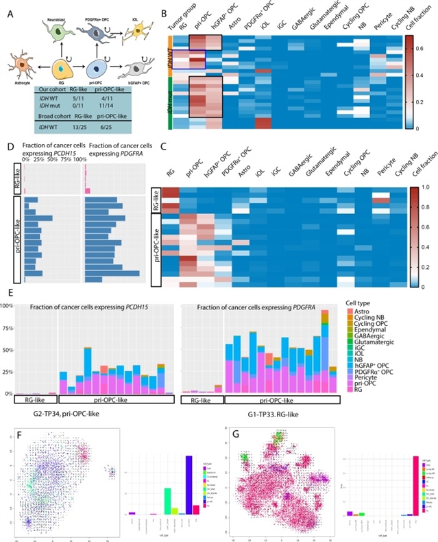 图1 胶质瘤可分为RG样和pri-OPC样肿瘤