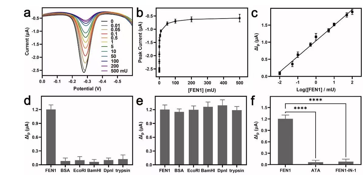 基于SWV峰电流响应的FEN1定量检测及选择性、抑制剂评价