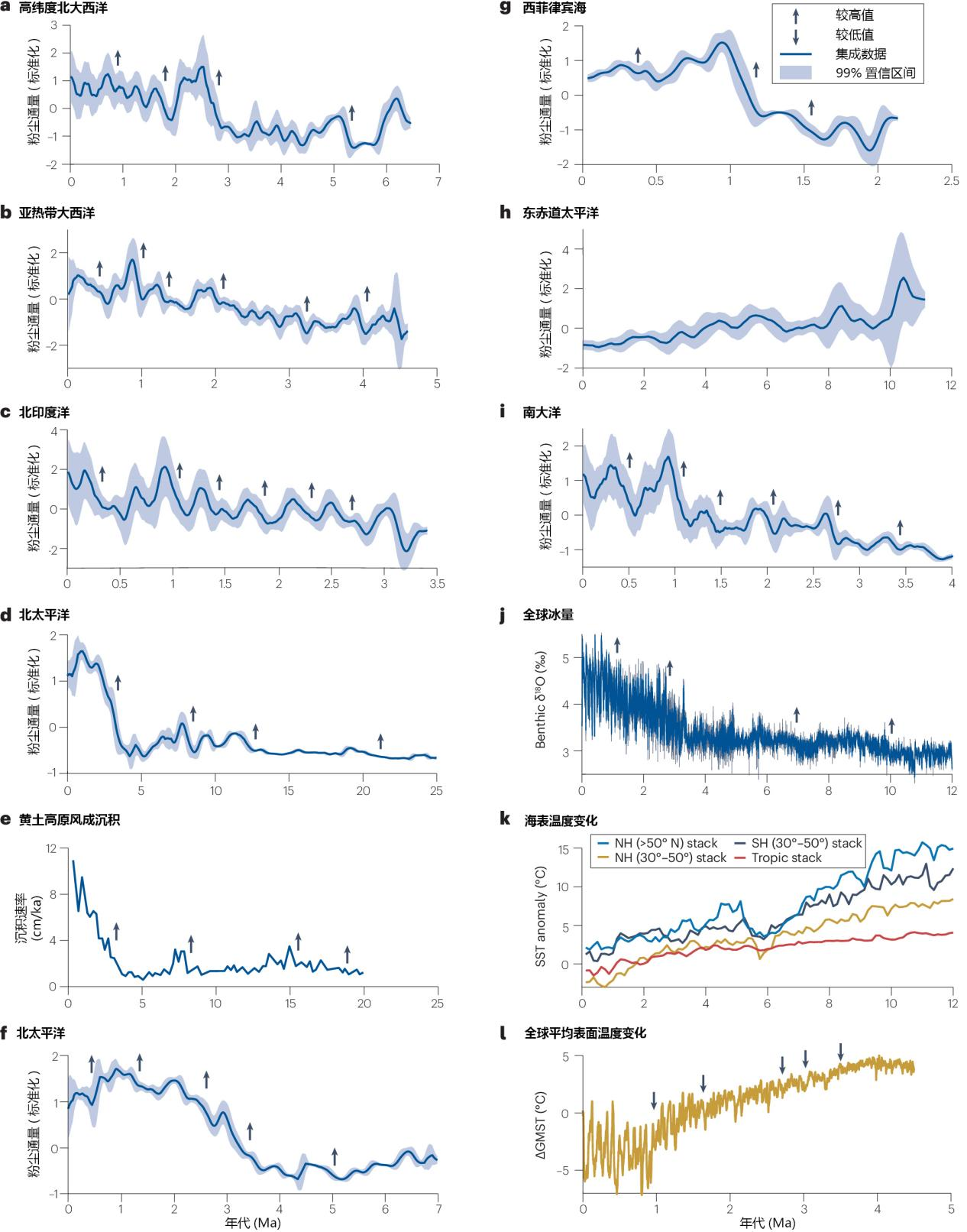 晚新生代主要大洋盆地粉尘通量变化与全球温度、冰量变化的联系