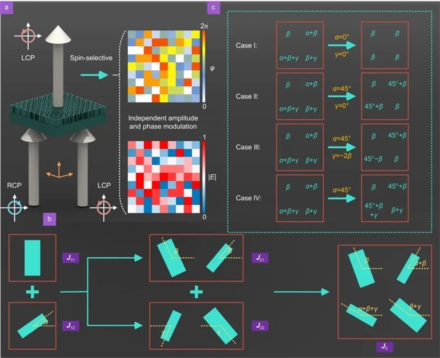 全硅超表面作为一种新兴的光学平台,通过调整双折射结构的尺寸、形状及排列,能够实现对入射太赫兹波的高效操控。最近,研究者们开始关注超表面的自旋相关现象,尤其是其在调制入射波的复振幅上的应用。复振幅调制涉及到振幅和相位的联合调控,能够提供比单一振幅或相位调制更丰富的信息处理能力。