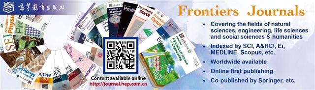 由教育部主管、高等教育出版社主办的《前沿》(Frontiers)系列英文学术期刊,于2006年正式创刊,以网络版和印刷版向全球发行。系列期刊包括基础科学、生命科学、工程技术和人文社会科学四个主题,是我国覆盖学科最广泛的英文学术期刊群,其中12种被SCI收录,其他也被AHCI、Ei、MEDLINE或相应学科国际权威检索系统收录,具有一定的国际学术影响力。系列期刊采用在线优先出版方式,保证文章以最快速度发表。