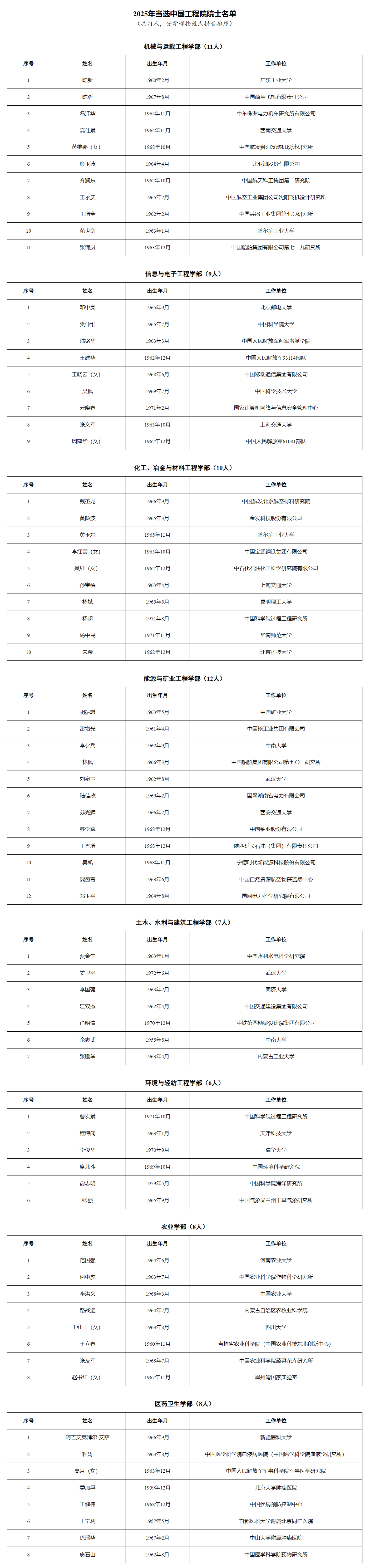 关于公布中国工程院2025年院士增选当选院士名单的公告