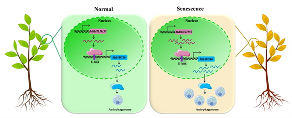 MdATG10和 MdbHLH155协同调控自噬的分子机制示意图。西北农林科技大学供图