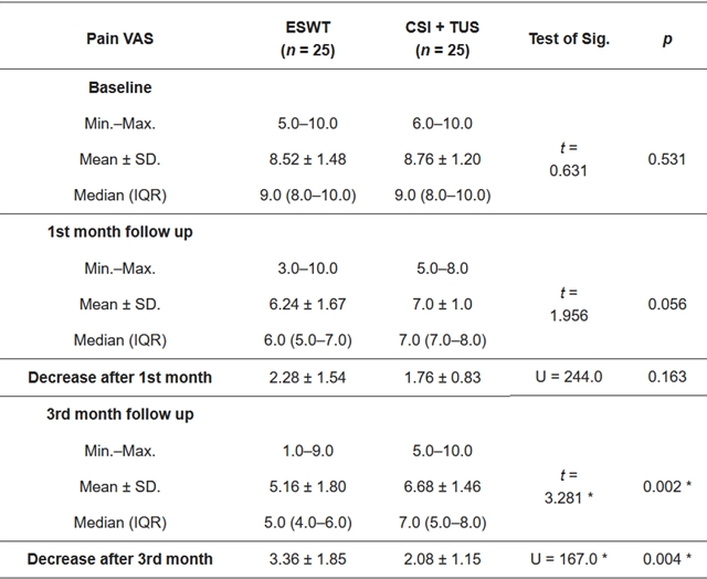 • A组(体外冲击波治疗组):接受4次每周1次的径向冲击波治疗(2000次脉冲,2.5 bar,10.0 Hz);