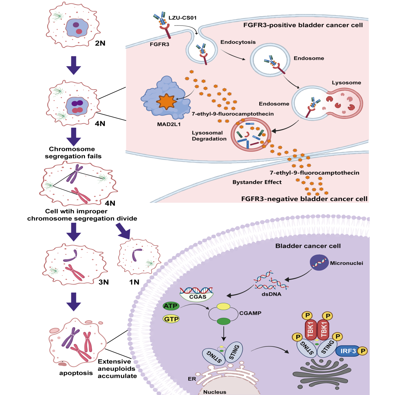 他口中的“突破口”,正是兰州大学第二医院泌尿外科王志平教授团队与兰州大学药学院刘映前教授团队跨界合作、历时数年合作,从小分子的抗肿瘤研发到靶向FGFR3(成纤维细胞生长因子受体3)的膀胱癌抗体偶联药物(ADC)——LZU-WZLYFG001的进阶。这款候选药物不仅在临床前研究中展现出“高效低毒”的突出优势,更有望为耐药膀胱癌患者打开一扇希望之窗。相关论文发表于《先进科学》(Advanced Science)。