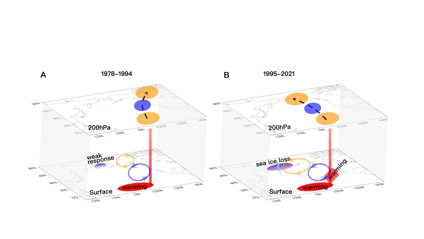 在国家重点研发计划、国家自然科学基金等项目资助下,王鑫团队联合中国科学院南海海洋研究所研究员王春在、研究员张磊、副研究员何卓琪,以及美国加州大学尔湾分校教授Jin-Yi Yu和中山大学教授刘骥平等,在北极气候变化研究中取得重要进展。