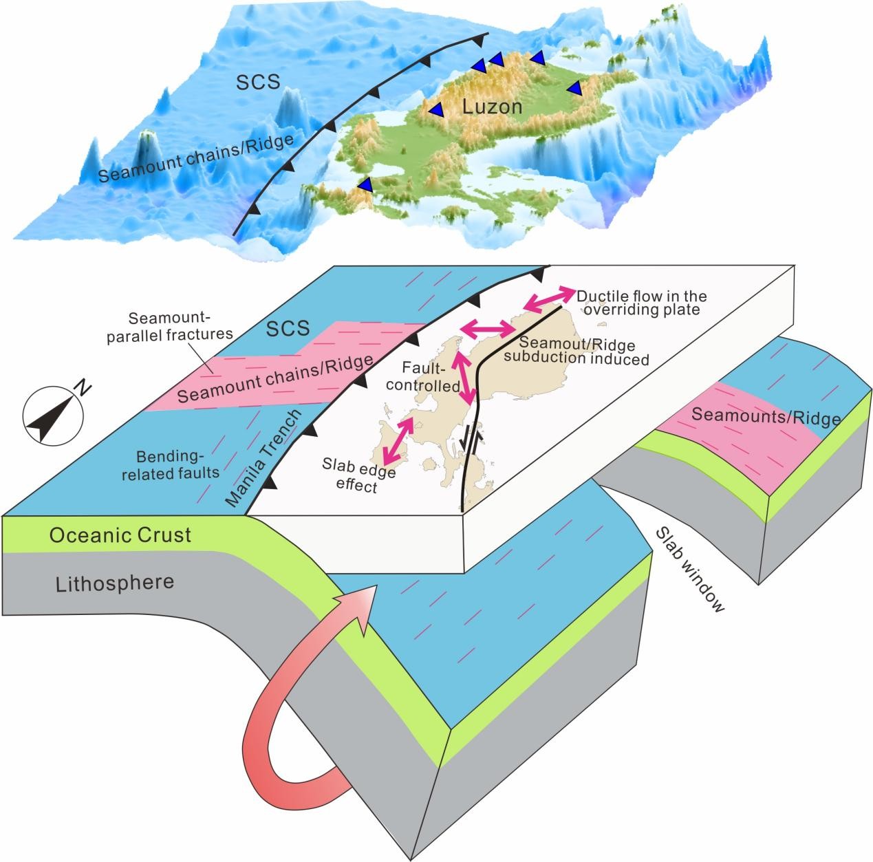 论文第一作者和共同通讯作者、中国科学院南海海洋研究所副研究员曹令敏介绍,吕宋岛北部处于欧亚板块与菲律宾海板块汇聚边界,是全球最典型的成熟俯冲带之一。马尼拉海沟正持续吞噬一系列巨型海山,这些地形异常体如何重塑上覆板块应力场、如何调控深部变形与地震活动,长期缺乏直接、系统的地震学观测证据。