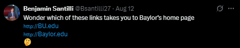 “看看下面的两个链接,不用猜你就知道哪个能把你带到贝勒大学的主页。”