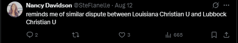 “这让我想起了路易斯安那州基督教大学和拉伯克基督教大学之间的类似争议。(两校的缩写都是LCU)”