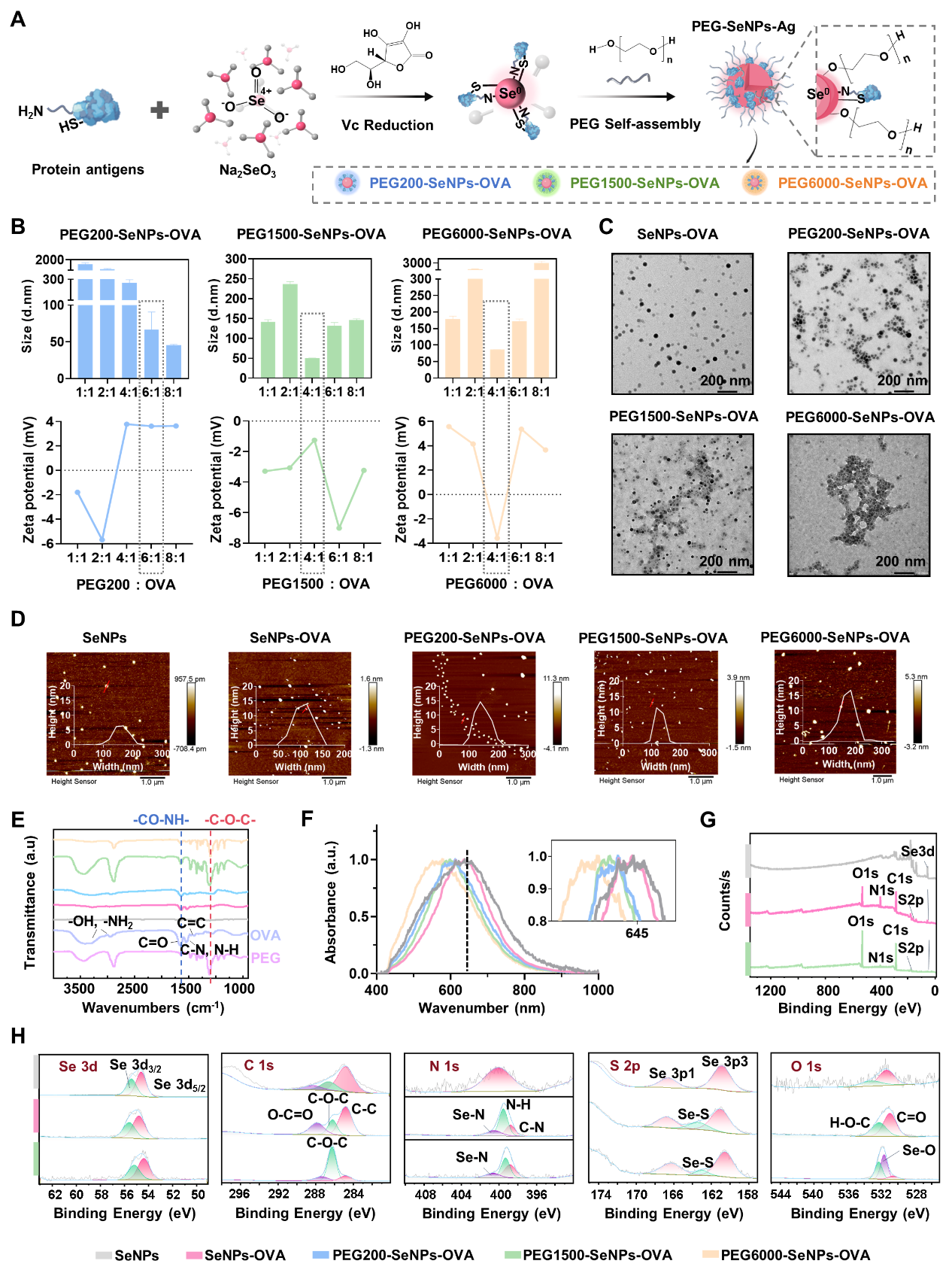 图1:聚乙二醇(PEG)精准修饰的纳米硒黏膜疫苗合成简便且展现出良好的稳定性。