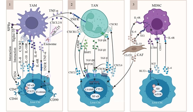 图2 肝癌干细胞与促肿瘤免疫细胞的相互作用