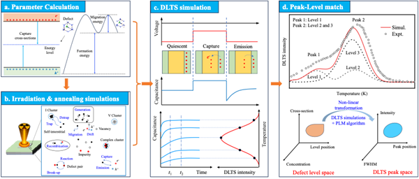 半导体器件在工艺加工和高能粒子辐照环境下,会产生非平衡态缺陷。此类缺陷相对于平衡态缺陷的识别极具挑战性,现有的表征技术如深能级瞬态谱(DLTS)只能探测光电信号,无法解析缺陷的原子起源,而传统的平衡态缺陷理论也难以处理非平衡缺陷的多维特性。