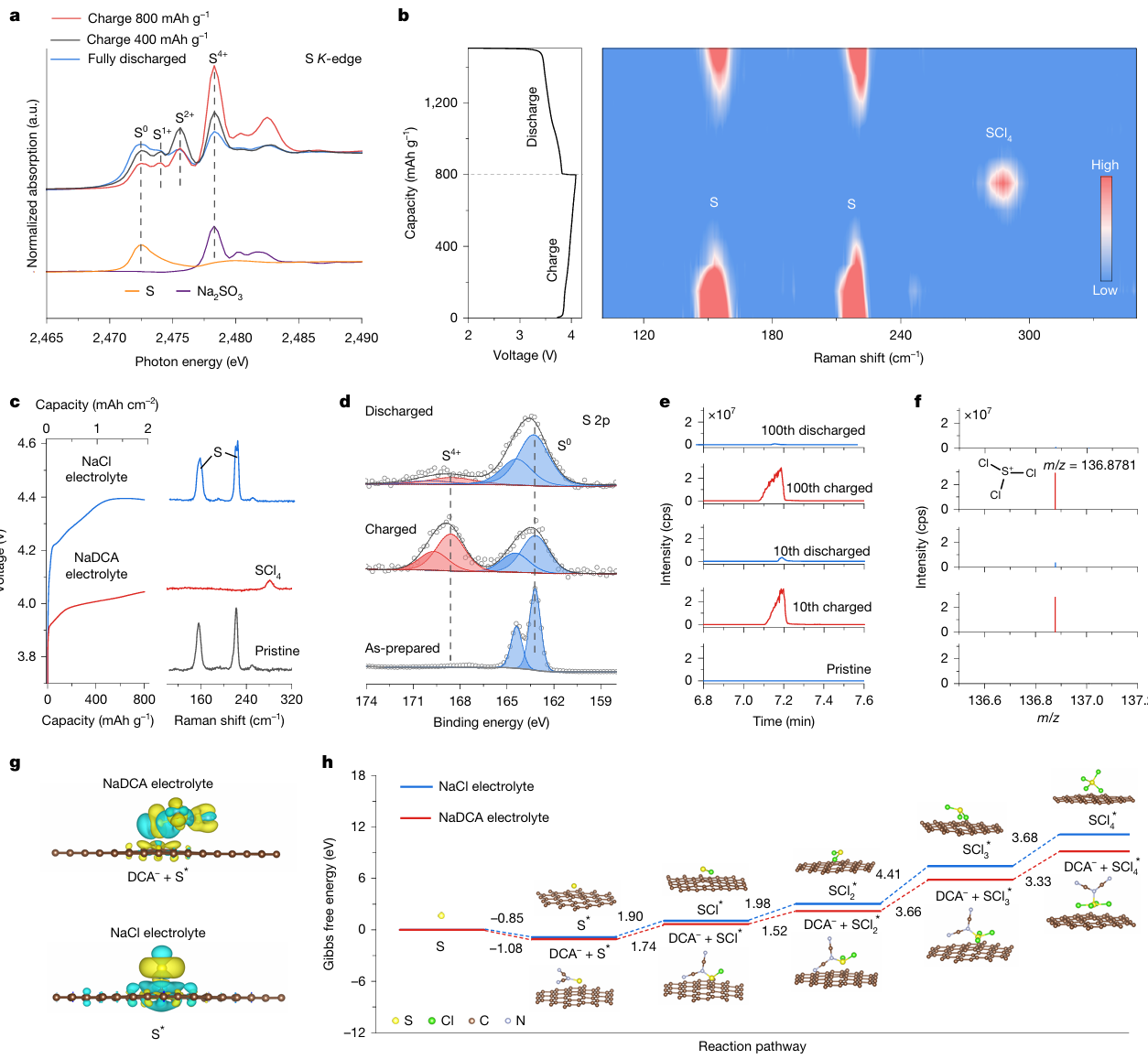 图1:S0/S4+正极反应过程解析。