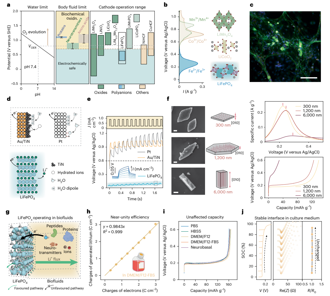 图2:磷酸铁锂在生物溶液环境中的电化学验证。