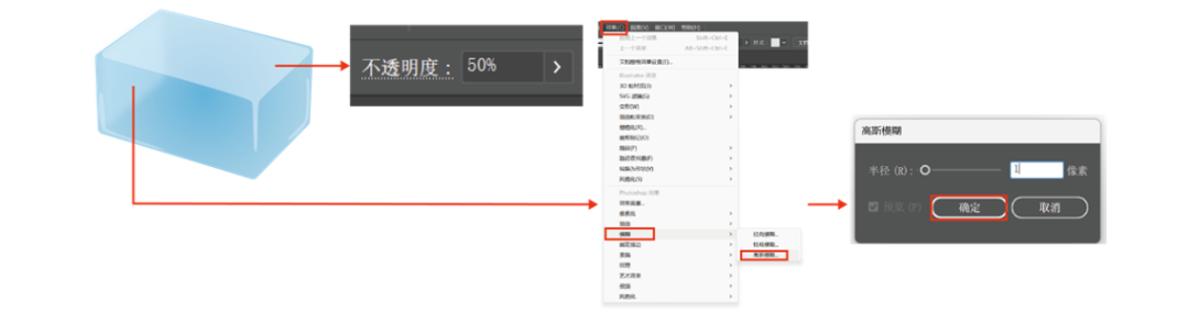 用钢笔工具绘制反光面,调整其透明度与高斯模糊(效果—模糊—高斯模糊)。再按快捷键Ctrl+{(下移)或Ctrl+}(上移)调整反光面图层位置。