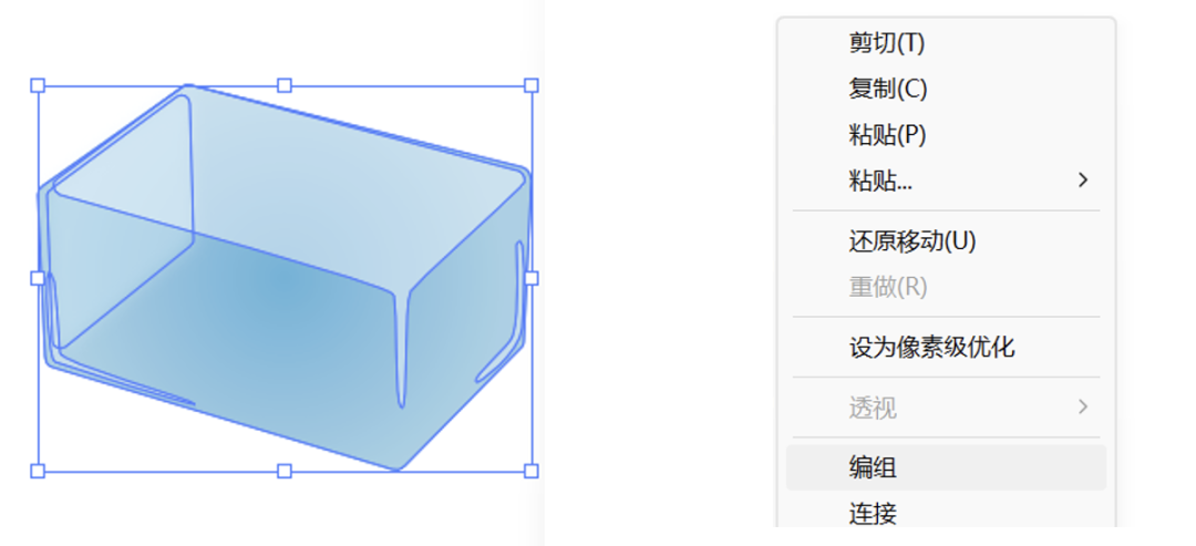 绘制完成后,选择立方体与反光面Ctrl+G编组(可右击选择编组)。